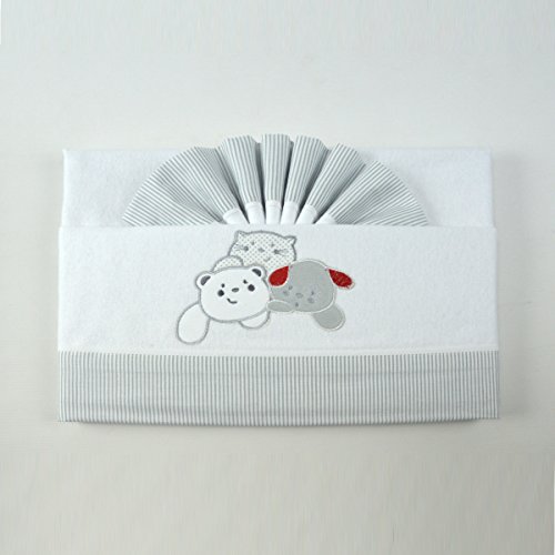 PEKITAS: Parure di lenzuola di flanella per neonati. Set di 3 pezzi per lettino da 60 x 120 cm, 100% cotone, prodotto in Portogallo. Cuna Grigio-Bianco