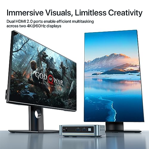 【Display HDMI doppio e 4K】Dotato di grafica Intel UHD, il mini computer per computer supporta la riproduzione video 4K e può essere collegato a due schermi 4K a 60Hz con due porte HDMI 2.0. Include il supporto VESA per una configurazione del PC all-in-one e più spazio sul computer.