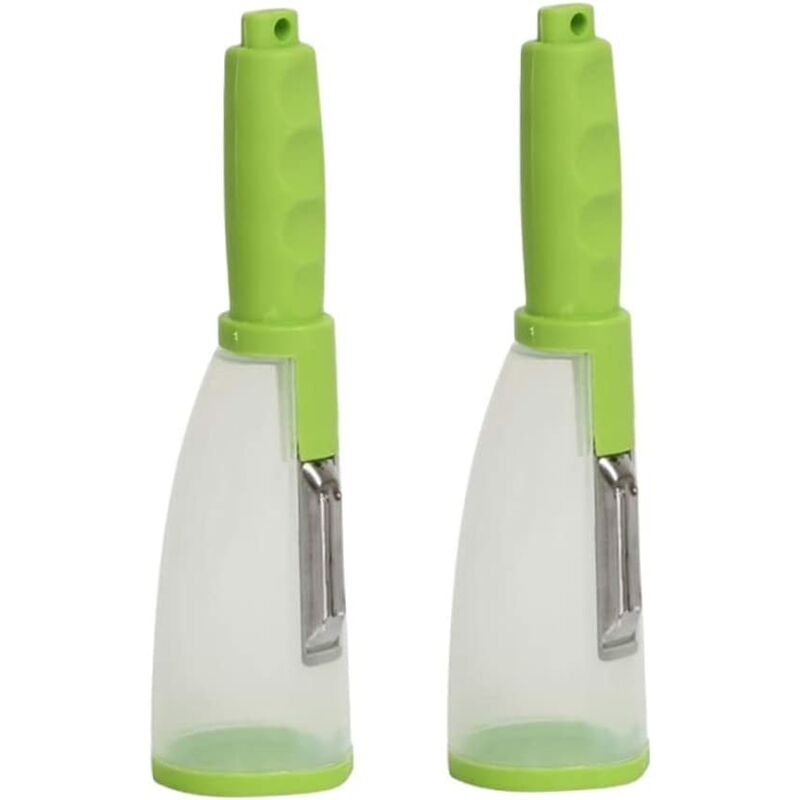 Può fornire una presa comoda e antiscivolo anche in condizioni di bagnato.C'è un foro rotondo sul manico, che è comodo da appendere e riporre, risparmiare spazio < p>-Il l'affettatrice di questo pelapatate è realizzata in acciaio inossidabile, molto affilato e non facile da arrugginire. -Il pelapatate è dotato di un pelapatate in plastica, la buccia è facile da riporre e risolve il problema della frutta e della verdura che cadono sul pavimento. - Questo pelapatate da cucina è realizzato in plastica per alimenti e anche il pelapatate è privo di BPA. parti di assemblaggio, il pelapatate è anche lavabile in lavastoviglie. - Dimensioni: 20x5x5 cm / 7,87x1,97x1,97 pollici Dopo aver sbucciato, basta aprire il coperchio inferiore, puoi versare facilmente la buccia. Sono necessari alcuni secondi per completare il lavoro di pulizia sotto l'acqua corrente.