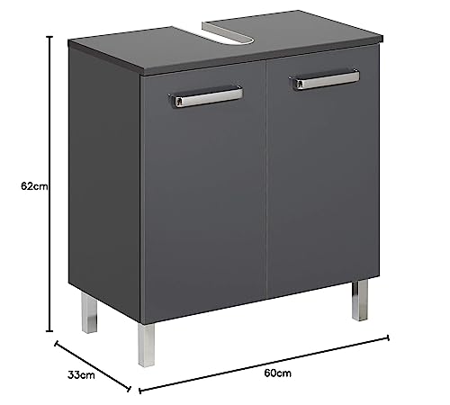 Elegante: questo moderno mobiletto sottolavabo in antracite lucido con le eleganti maniglie cromate lucide attirerà sicuramente l'attenzione nel vostro bagno