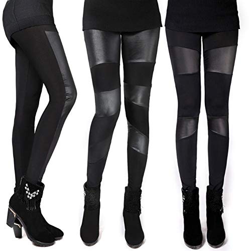 Pelle Autunno Inverno Caldo Donne Patchwork Cucitura Elastica Similpelle Leggings Elastica Slim Signore Matita Nera Leggin Collant (Color: A, Size: One Size)