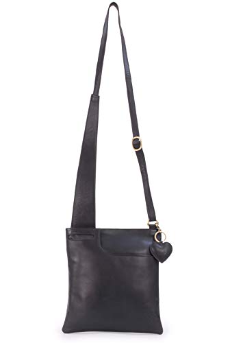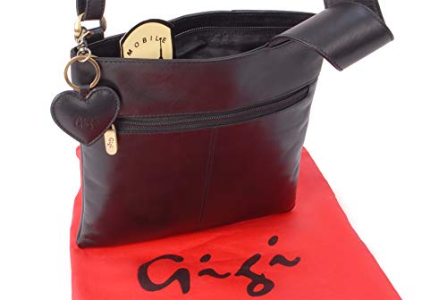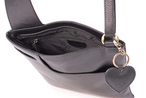 Gigi - Vera Pelle - Borse a Spalla da donna/Borsa a Tracolla/Borsa a Mano/con ciondolo a forma di cuore/Tracolla regolabile - 2057 - NERO