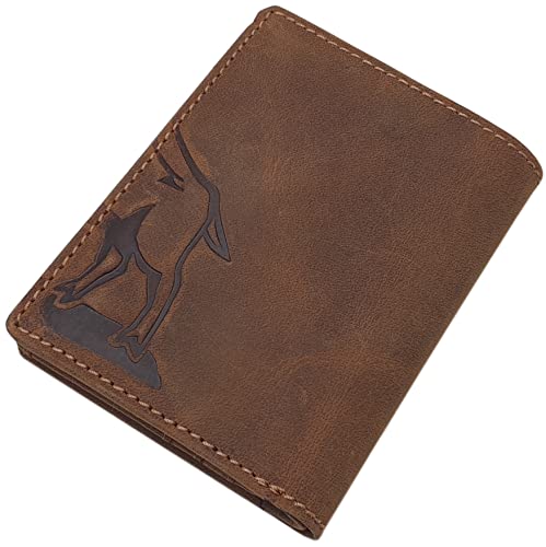 Pelle die bufalo portafoglio con cinghiale motivo in formato verticale o formato orizzontale con blocco RFID & NFC in marrone (Modello 1 / Formato verticale)