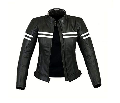 Puro in vera pelle da donna/da moto giacca armatura - Design doppio rivestimento bianco Black Medium