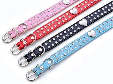1Pc Rosa 2 File in Pelle con Strass Bling Cuore con Borchie Cane Collare per Il Collare di Piccole o Medie Pet Colori Assortiti (M 42 * 2.0CM)