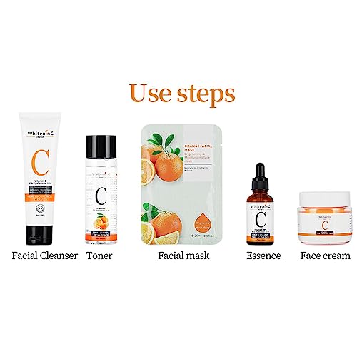 ♗Set completo: questo kit per la cura a pelle alla vitamina C fornisce un detergente, un toner, un siero, una crema per il viso e una maschera per il viso. Questi prodotti idratano e proteggono la pelle dai fattori ambientali e dai segni 'invecchiamento.