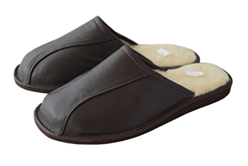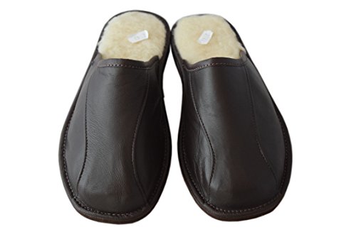 Pelle di vitello naturale e lana di pecora nero marrone Mens Slipper Shoes Mule, Marrone (Lana marrone bianco), 46 EU