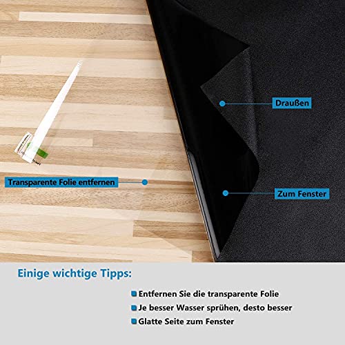 Pellicola per Finestra Nera, Protettiva per Privacy, Film Elettrostatico, Oscurante 100% Blocco di Luce, senza Colla, Anti-UV, Adatto per Camera da Letto, Sonno Durante il Giorno, Camera di Bambino
