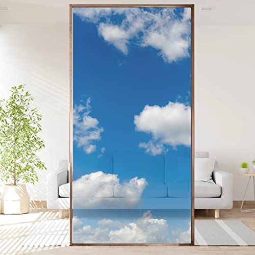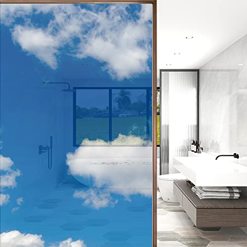 Pellicola Privacy Vetri Finestre, Statici Autoadesivi Pellicola Vetri Finestre Traslucido Film,Rimovibile Pellicola Finestre,Per Ufficio Bagno Camera Da Letto-Cielo blu90cmx200cm