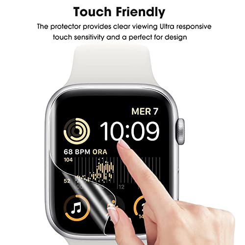 Pellicola Protettiva Compatibile Apple Watch 44mm SE (2022) SE (2021)/Series 6/5 44mm, 3D Copertura Totale Adatta a Sensore Ultrasonico, [Non Vetro] [Senza Bolle] [TPU Materiale] [HD Trasparenza]