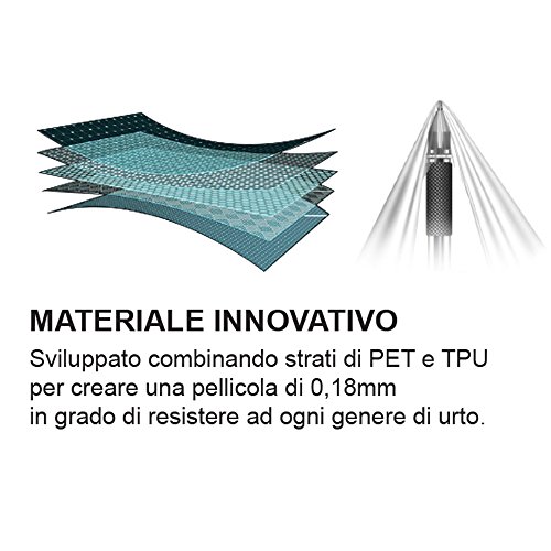 Sviluppata combinando strati di PET e TPU per creare una pellicola di 0,18mm in grado di resistere ad ogni genere di urto.