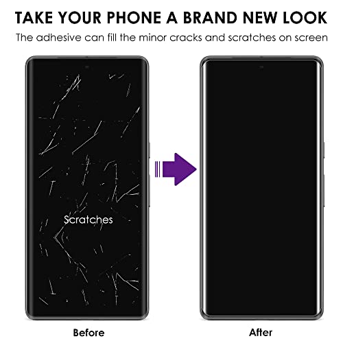 Adesivo a schermo intero: è una protezione adesiva in vetro temperato a schermo intero, non come la protezione in vetro con colla per bordi, non è una matrice di punti/bordi neri/guasto al tatto e non si perde inaspettato. L'adesivo riempie anche le piccole crepe e graffi sullo schermo per renderlo un look nuovo di zecca.
