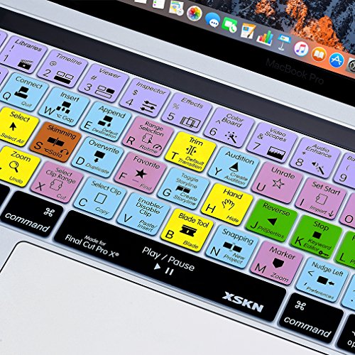 XSKN 2016, pellicola protettiva in silicone per tastiera con shortcut inglese, per modelli multi touchbar MacBook Pro Retina 13" e 15" (A1706 e A1707, tasti piatti, data di rilascio ottobre 2016), layout universale US e UE