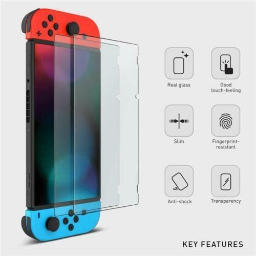 Pellicola protettiva in vetro temperato per console Nintendo Switch, durezza 9H, alta risposta, in vetro temprato trasparente, antigraffio, anti-bolle (confezione da 2)