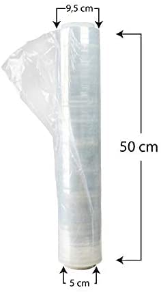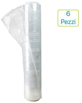 6 rotoli pellicola film estensibile trasparente manuale 2 kg, altezza rotolo 50 cm e con spessore 23 mycron, utilizzato prevalentemente nell'ambito dell'imballaggio di unità pallettizzate. Prodotto "Made in Italy, sinonimo di alta qualità del film estensibile.