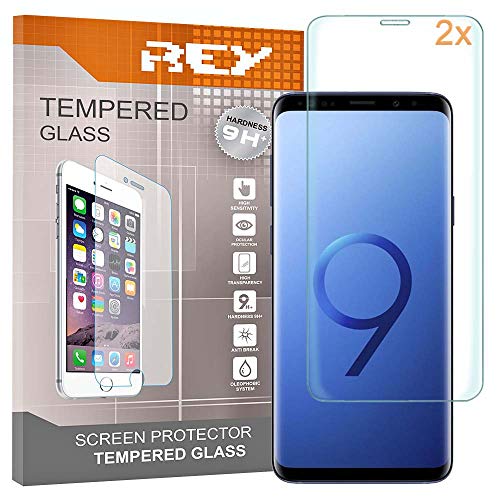REY Pack 2X Pellicola salvaschermo 3D per Samsung Galaxy S9, Trasparente, Copertura Completa, Pellicola Protettiva Protezione Schermo, 3D / 4D / 5D