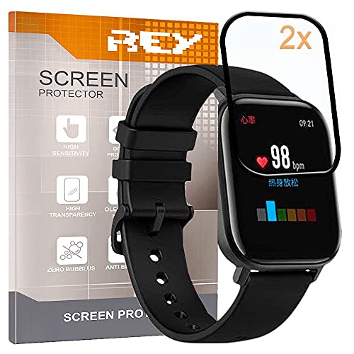 REY Pack 2X Pellicola salvaschermo 3D per XIAOMI AMAZFIT GTS 2, Nero, Vetro temperato, Copertura Completa, Pellicola Protettiva Protezione Schermo, 3D / 4D / 5D