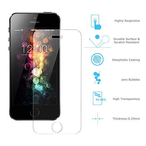 3 Pack - Pellicola Vetro Temperato iPhone 5 / SE / 5S / 5C, SUERW Pellicola Protettiva Screen Protector Film Ultra Resistente Durezza 9H per 5 / SE / 5S / 5C (0,25mm HD Alta Trasparente)