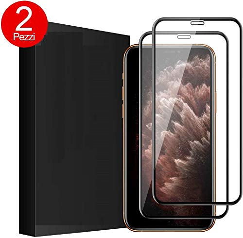 Kit 2 Pellicole (2 pack) Compatibile per iPhone XS Max/iPhone 11 Pro Max PELLICOLA Trasparente VETRO glass FULL 9d TOUCH SCREEN TEMPERATO antiurto 9H ANTIGRAFFIO (CORNICE Nero)