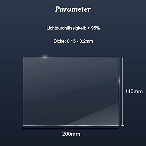 Compatibile con stampanti 3D ELEGOO Mars / Mars 2 PRO / ANYCUBIC Photon / Photon S / HALOT-ONE / LD-002R / LD-002H Dimensioni pellicola FEP: 140 x 200 x 0,15 mm.