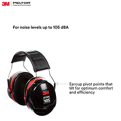 3M Peltor Optime 105 - Paraorecchie per protezione dell'udito, Black And Red, Optime 105