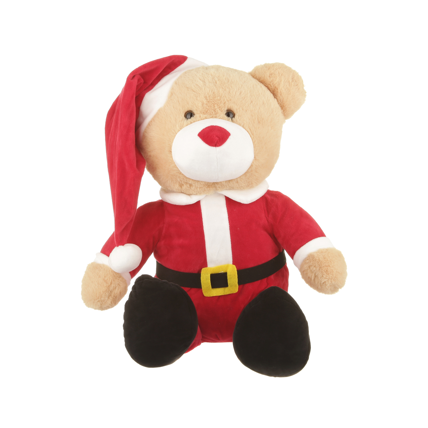 Cosa regalare a cuginetti, figli e nipoti a Natale? Un orsetto come questo li farà sicuramente felici! Il pupazzo ha uno sguardo dolce ed è davvero originale con il suo costume da Babbo Natale. I piccoli di casa si divertiranno a giocarci e abbracciarlo teneramente quando dormono... immagina che festa faranno trovandolo sotto l'albero di Natale. Dimensioni peluche: 60x40x35 cm.