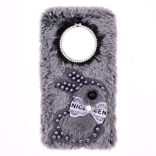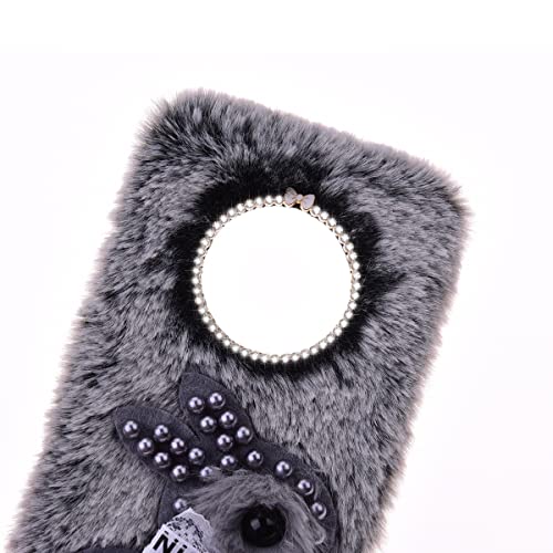 Peluche Coniglio Fluffy Soft Covers Peluche Custodia Cellulare per DoogeeX95,Cute Glitter Diamond Pearl Rabbit Girls Custodia Morbida Confortevole in Finta Peluche con DoogeeX95,Coniglio grigio perla