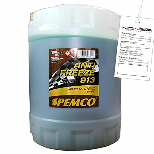 Pemco 913 - Liquido antigelo, conforme a norma G11, resiste fino a -40 °C, pronto all'uso, tanica da 10 l, colore: verde