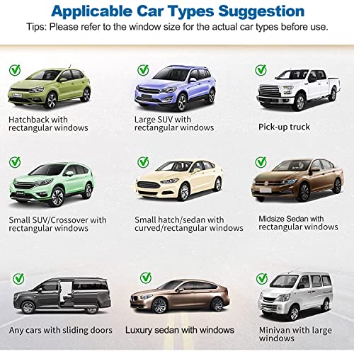 Ombrelloni si adattano alla maggior parte delle finestre: Questo 2pack 21 * 14 pollici parasole per i finestrini laterali si adattano al 97% dei finestrini di auto o SUV modelli. Queste tende della finestra dell'automobile della maglia utilizzate anche per le tinte automobilistiche della finestra della protezione solare. 【Nota】Le tende da sole non possono essere utilizzate se i finestrini dell'automobile sono arrotolati.