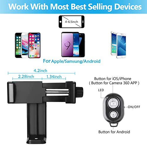 【Compatibilità rinforzata】-- Il supporto a clip può essere esteso da 5,8 cm a 10,1 cm di larghezza, il che lo rende compatibile con la maggior parte dei telefoni intelligenti, come: per iPhone 12/12 Pro/12 Pro Max/11 Pro Max/ SE/Xs Max/Xs/Xr/X/8/8 Plus/7/7 Plus/6 6S/6 Plus 6s Plus,Samsung Galaxy S9/S8/ S7/S6/Huawei.Il può anche essere compatibile con quasi le fotocamere, come: Nikon/Canon/Pentax/Sony Action,digitare GoPro come DBPOWER/Garmin Virb XE/SJCAM SJ4000, GoPro 4/5/6 ecc