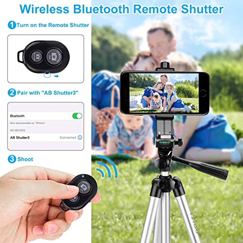 PEMOTech - Treppiede per smartphone, con supporto girevole a 360°, 127 cm, treppiede in alluminio, con telecomando Bluetooth, portatile tripod per iPhone, Samsung Galaxy Fotocamera