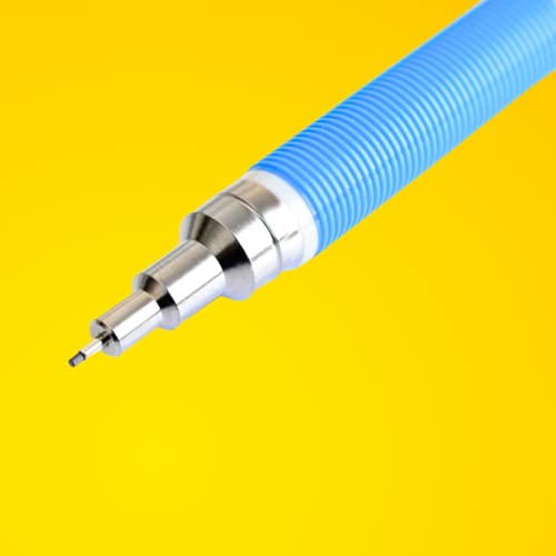 Maggiore lunghezza di scrittura: con una sola pressione del pulsante sulla parte superiore, si rilascia 1 mm di mina e si può scrivere fino a 5 metri. Dopo aver premuto quattro volte il pulsante, si ottiene una lunghezza di scrittura di 20 m, dopo di che il pulsante deve essere premuto di nuovo. Un raffinato indicatore della mina sul cappuccio indica la durezza (HB, B, 2B, H, 2H, 2H, 3H).