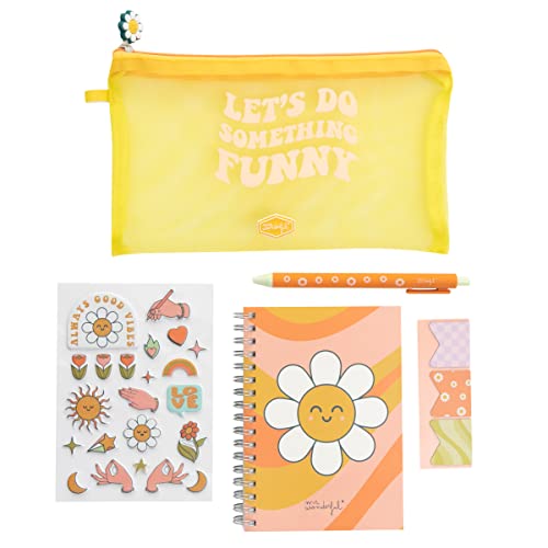 All'interno troviamo: · 1 foglio di adesivi in rilievo · 1 penna · 1 quaderno con rilegatura a spirale · 3 mini segnalibri magnetici