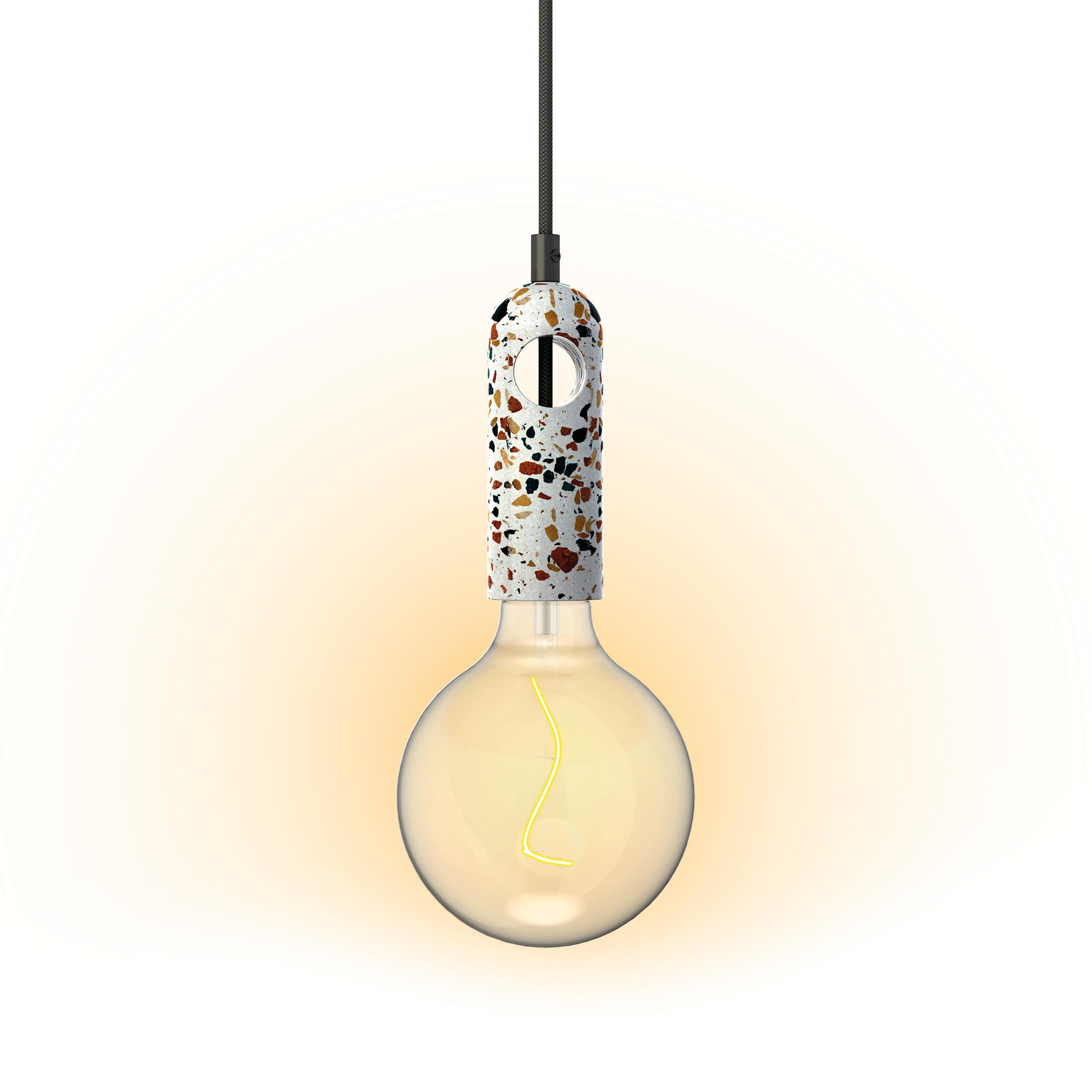Portalampada cilindrico pendel in terrazzo multicolor con cavo da 1,5m, attacco E27, potenza max 60W.