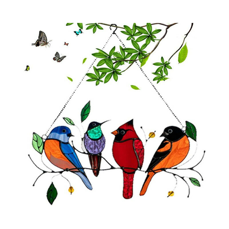 Questi simpatici uccelli rari cambierà la sua luminosità e la tentazione sotto la luce naturale, l'aggiunta di felicità a qualsiasi spazio nella vostra casa. Multi-purpose: la luce del display trappole su windows, come arte della parete pendenti, O come benvenuto segni su grucce, ecc. Essi aggiungono colori brillanti in qualsiasi spazio. Vari tipi di vetro sono tagliati a mano, tra cui ondulato e strisce di vetro per aumentare i dettagli e le dimensioni, E sono saldati insieme con foglio di rame. Materiale: Acrilico 7 uccelli di Dimensioni: 20*12 centimetri di Spessore: 4.8 millimetri Peso: 40g 4 uccelli di dimensioni: 15*10 centimetri di spessore: 4.8 millimetri peso: 35g Accessori: catena di lunghezza 50cm peso 10g Cornici E Articoli Da Esposizione: 1 * finestra di colore del pendente Nota: Il colore dell'ombra apparirà più scuro e più scuro o più scura quando non c' è luce. Il fatto a mano della natura di questo prodotto può variare in colore, dimensione e colore. Se si acquista lo