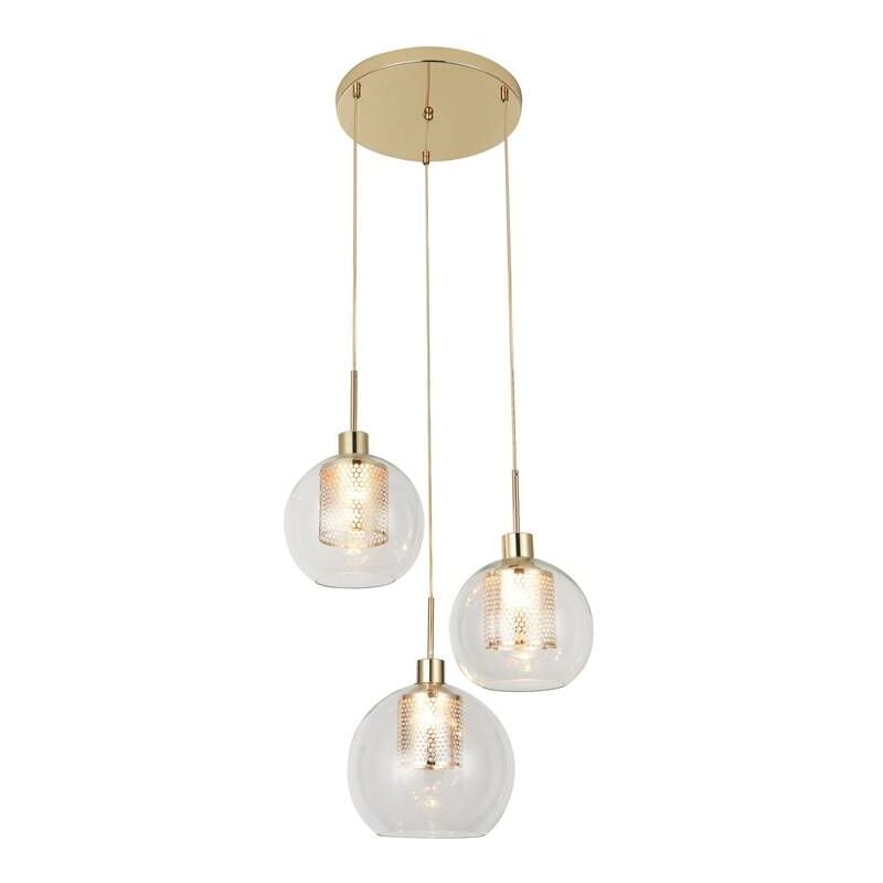 Philana lampada a sospensione E27 3X MAX 40W Dimensioni in mm: Altezza: 1290 Diametro: 450 tipo di lampadina / Versione: E27 massima Potenza: E27 MAX 40W 3X classe (a ++ a e): a ++ per posta dimmerabile: NO classe: IP20 materiale rivestimento: metallo Colore: oro vetro / materiale dello schermo: in vetro