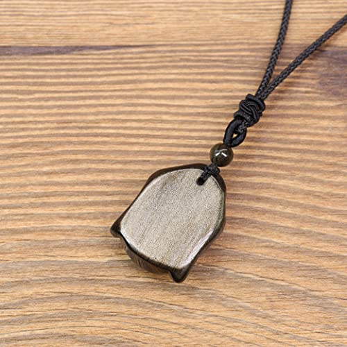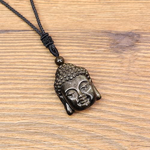 COAI Pendente Testa di Buddha in Ossidiana Oro, Collana Pendente Unisex Laccio Regolabile