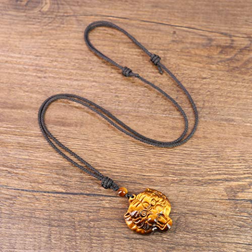 COAI Pendente Testa di Tigre in Occhio di Tigre Marrone, Collana Pendente Unisex in Pietre Naturali con Laccio Regolabile e Animali della Mitologia Cinese Simboli di Buon Auspicio