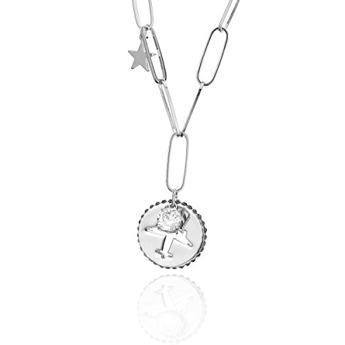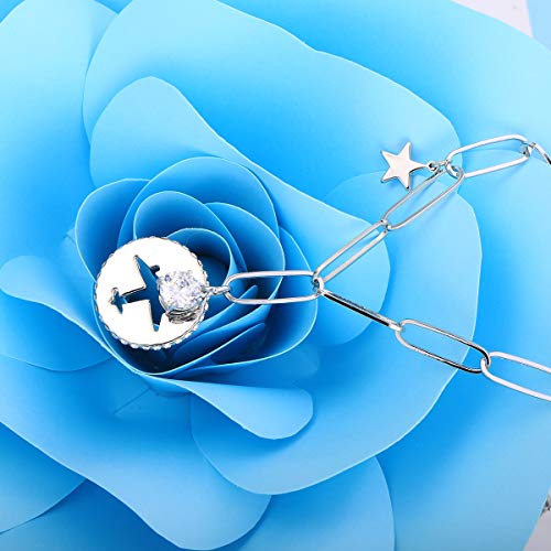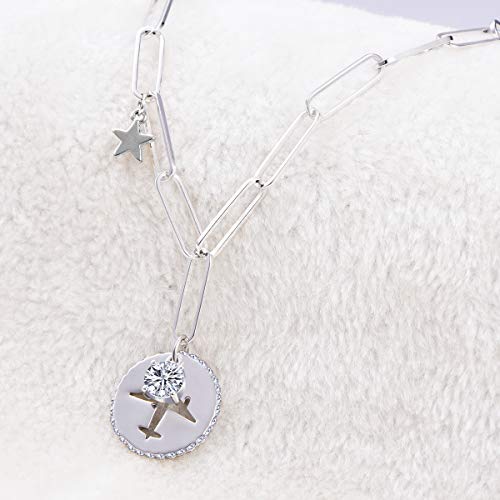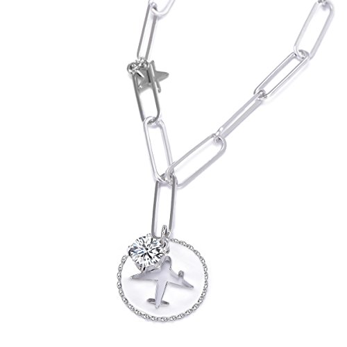 PengJin-- Collana con ciondolo a forma di aereo circolare a forma di Y con zircone e Cristallo, colore: Argento, cod. PJ-X229-XL08419-SL