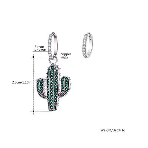 Pengjin Orecchini anallergici con cactus e zirconia cubica verde, orecchini asimmetrici, da donna, ideali come regalo per la fidanzata, Zirconia cubica, zirconia cubica