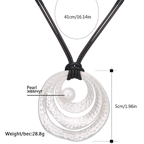 Pengjin PJ Pearl Round Leather Cord Necklace, Circle Environmentally Friendly Alloy pendantSweater Y-Chain, Girl Birthday, Anniversary, Valentine's Day Gift