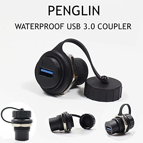 PENGLIN 2 PEZZI Accoppiatore USB 3.0 impermeabile per montaggio pannello di controllo, connettore pass-through USB IP67, presa a femmina, adattatore di prolunga Bulkhead