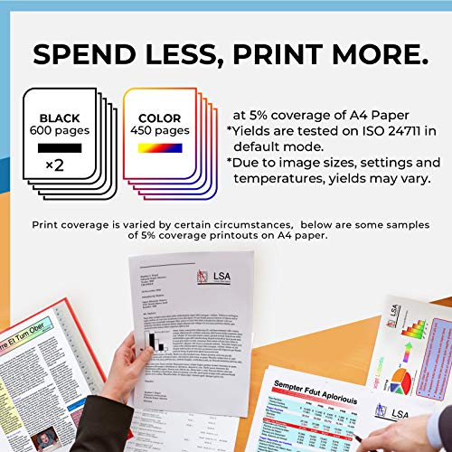 【Risparmia di più con XL】 Fino a 600 pagine per cartuccia nera a 22ml & 450pagine per cartuccia a tre colori a 20ml, più pagine, più valore con le cartucce d'inchiostro XL ad alto rendimento. (Basato su una copertura del 5%.) (I rendimenti sono basati sullo standard ISO 24711.) (Le dimensioni dell'immagine, le impostazioni della stampante e la temperatura possono influenzare i rendimenti delle pagine.)