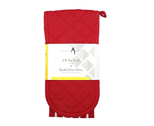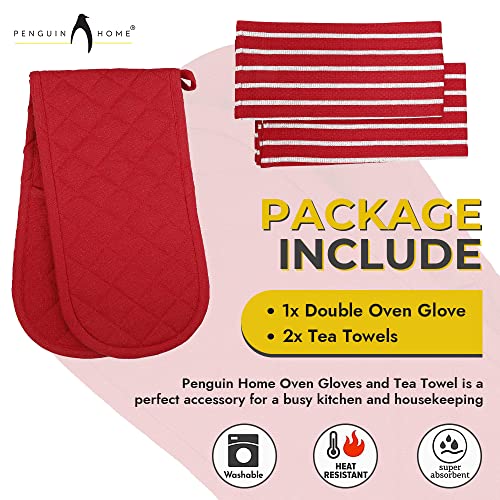 Penguin Home - Set 3 Pezzi: Guanto da Forno & Strofinacci - 100% Cotone, Design Elegante - Morbidi, Durevoli Ed Assorbenti - Lavabili a Mano - Rosso