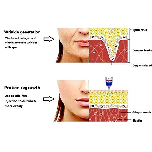 Principio tecnico: con l'aiuto della tecnologia di dispersione transdermica, il dispositivo a pressione produce un'alta pressione e il liquido viene espulso dai micropori nella parte superiore dell'estremità anteriore per formare una colonna fluida ultra fine da 0,17 mm, che penetra istantaneamente e raggiunge il derma, rendendo facile ottenere un effetto anti-invecchiamento