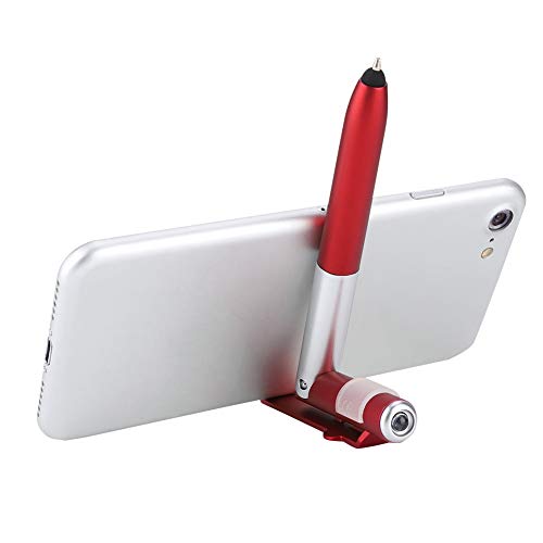 Penna capacitiva, ASHATA 4 in 1 Touch Screen Penne a sfera capacitive con luce a LED per tablet, Penna touch capacitiva pieghevole Stilo/Supporto per telefono cellulare(Rosso)