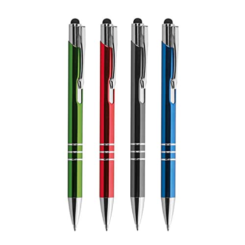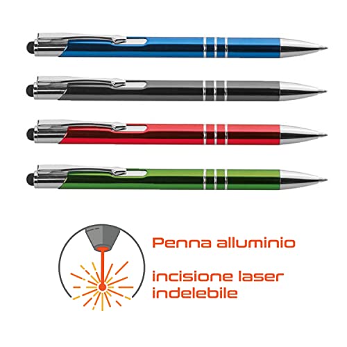 GFD - Penna Chrome a sfera personalizzata con gommino per Touch Screen - Meccanismo a scatto e corpo in allumino - Colore Verde - Quantità: 50 pezzi - Made in Italy