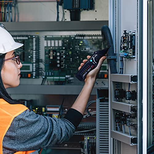 【DISPLAY DI RILEVAMENTO】 Il tester dispone di indicatori LED, rilevamento intelligente dell'intensità di tensione: indicatori LED verdi, gialli e rossi autoilluminanti indicano la presenza di bassa, media o alta tensione. Misura facilmente e intuitivamente la forza della tensione illuminando automaticamente i diversi colori e il numero di indicatori LED e la frequenza del suono di allarme