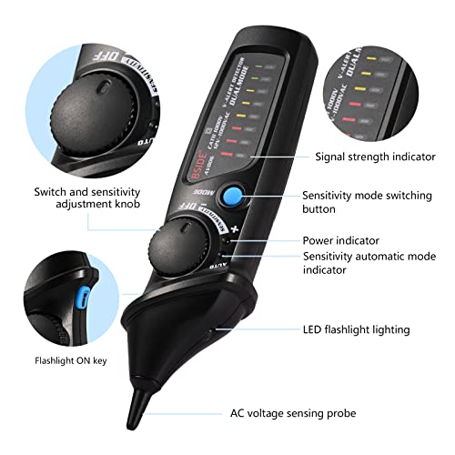 【DUE MODALITÀ】 Impostazione flessibile manuale + automatica, questo rilevatore ha una modalità automatica / manuale, che può essere selezionata in base alle proprie esigenze. Applicare ripetutamente la tensione CA in modalità automatica o manuale, comodo per rilevare e indicare l'esistenza di tensione CA, esperienza con penna elettronica di quinta generazione e tecnologia avanzata.