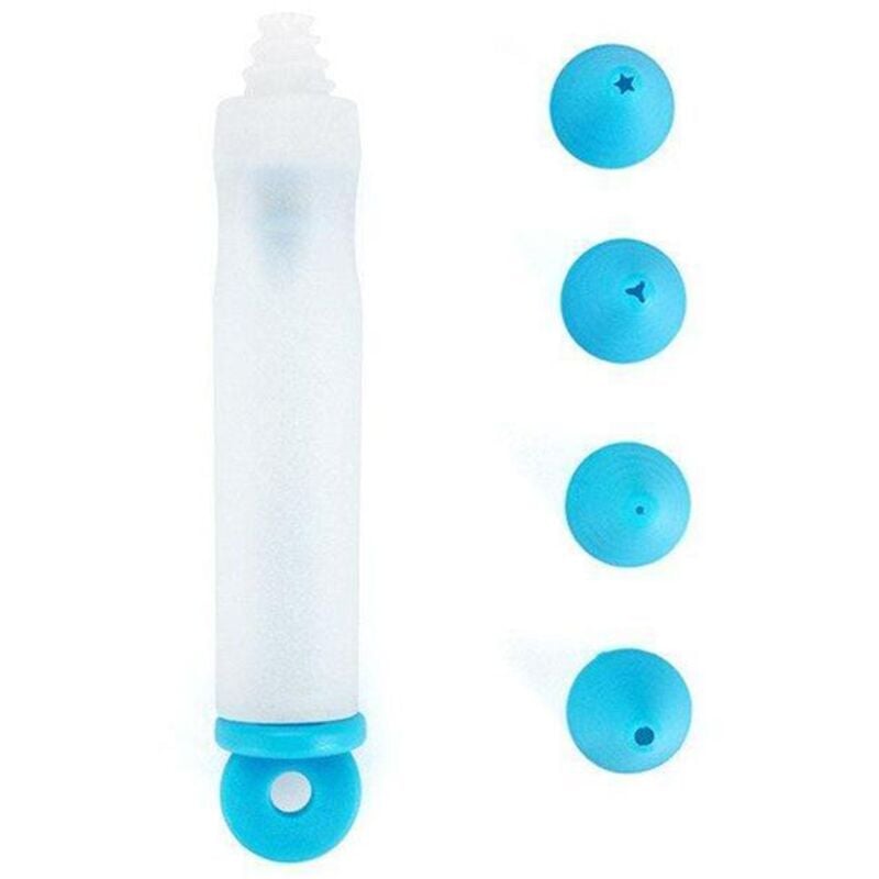 Con questa penna decorativa è facile sistemare la torta di compleanno. Riempi la penna con glassa o cioccolato e poi puoi facilmente scrivere, disegnare o creare motivi sulla tua pasticceria. La penna decorativa è dotata di 4 ugelli intercambiabili con diversi spessori, così puoi adattare la penna alla tua decorazione, glassa e torta. -penna decorativa per torte - semplifica la scrittura, il disegno o la creazione di modelli - 4 ugelli intercambiabili inclusi Specifiche: Colore blu Materiale: plastica, silicone